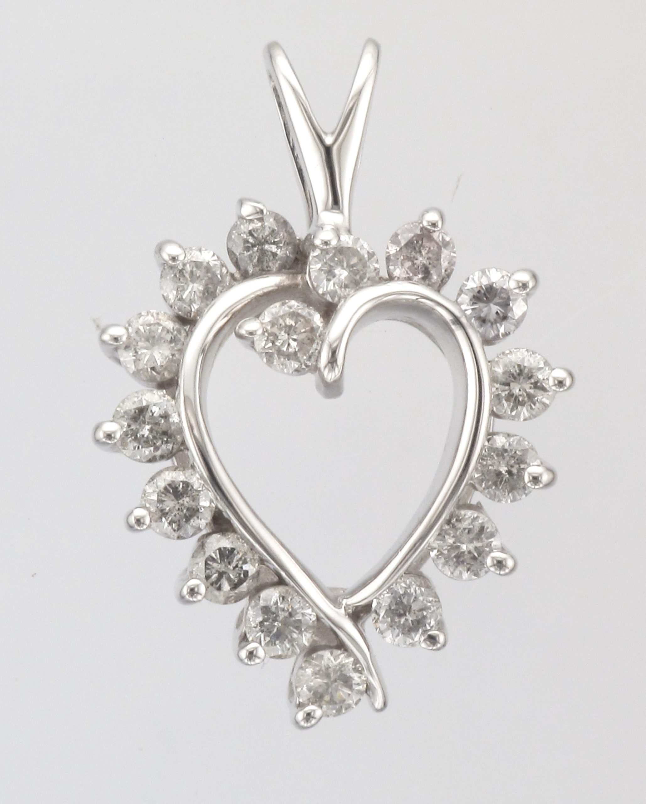14ct White Gold 16-Stone Round Brilliant Cut Diamond Claw Open Heart Pendant With A Split V Bail – Pendant Weight: 3.2 Grams – Total Diamond Weight: 0.75ct (Estimated)