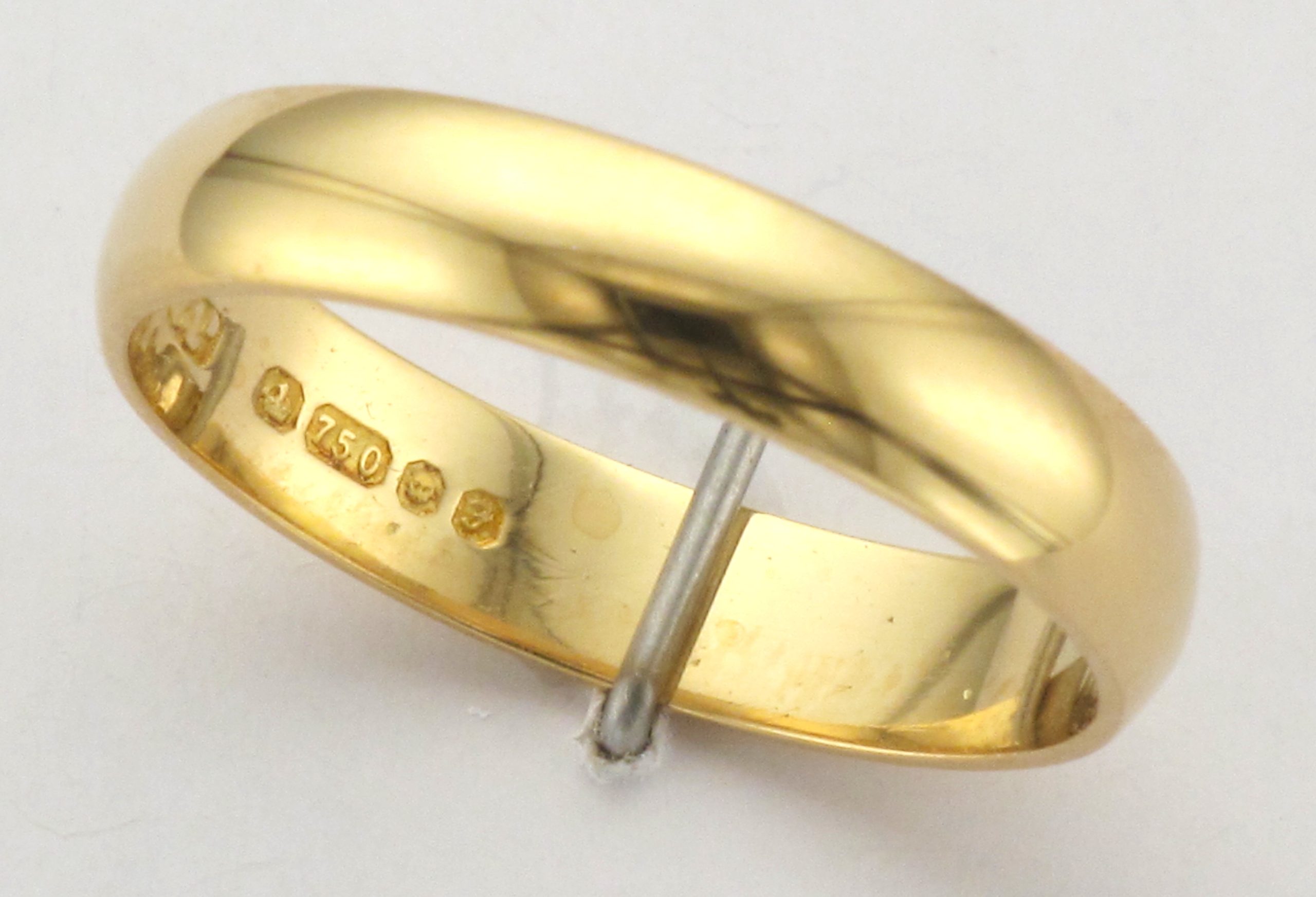 18ct Gold 3.8mm Gauge Plain Finish D-Shaped Wedding Band Ring – 2.6 Grams – Ring Size: J 1/2