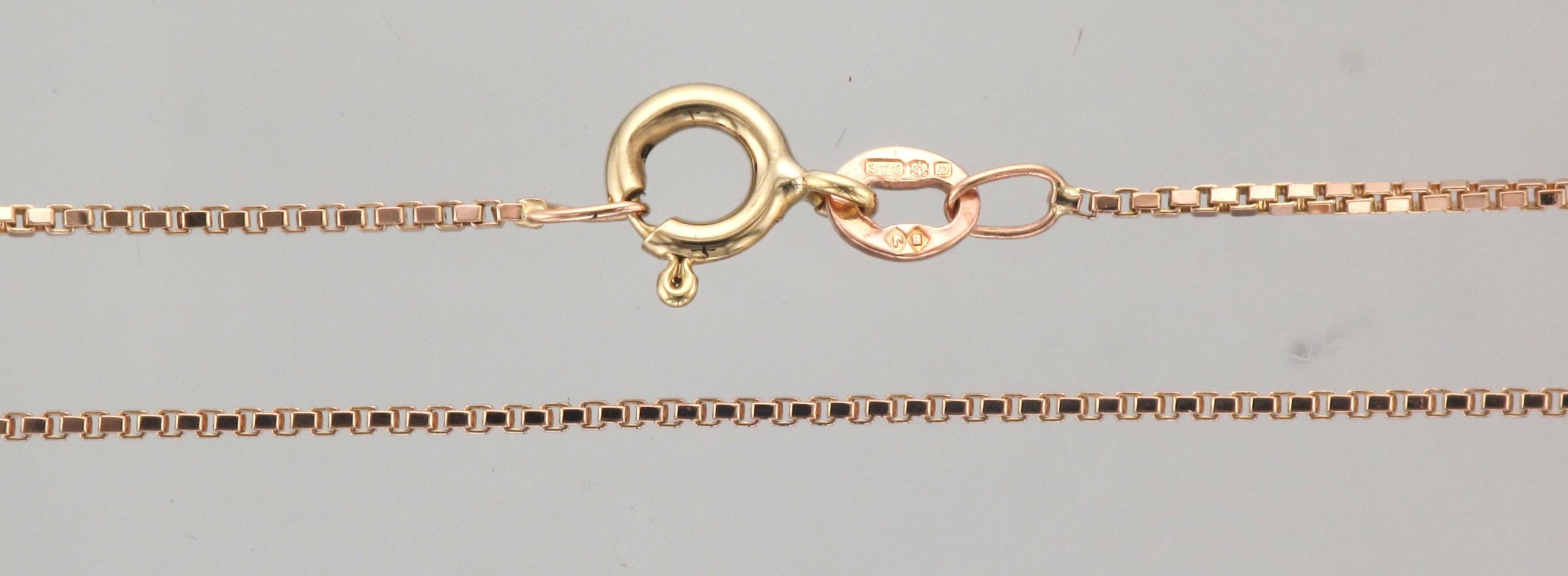 9ct Gold 16″ 1mm Gauge Square Box Link Chain With A Bolt Ring Clasp – 2.3 Grams