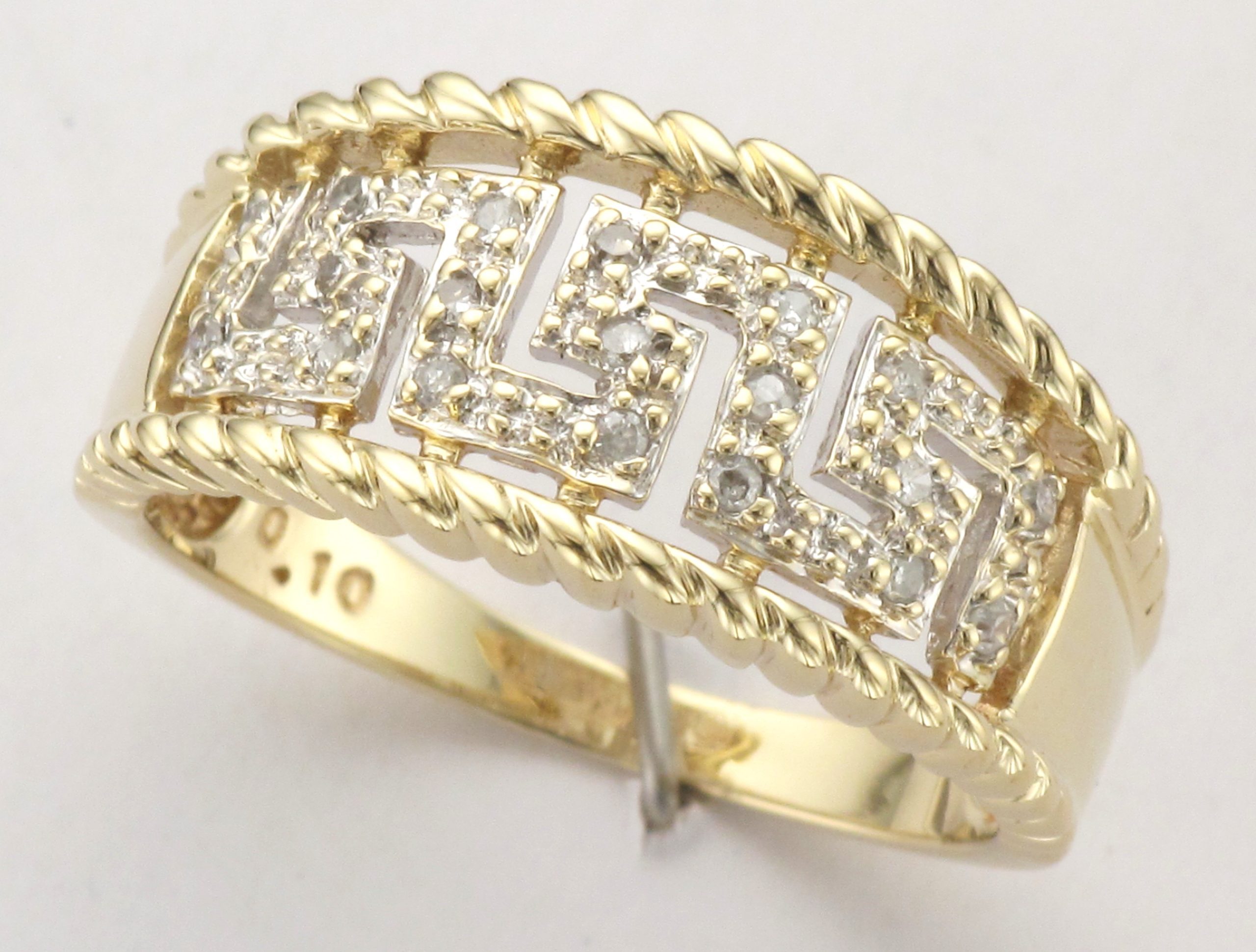 9CT GOLD 19 STONE DIAMOND SET GREEK KEY BAND RING