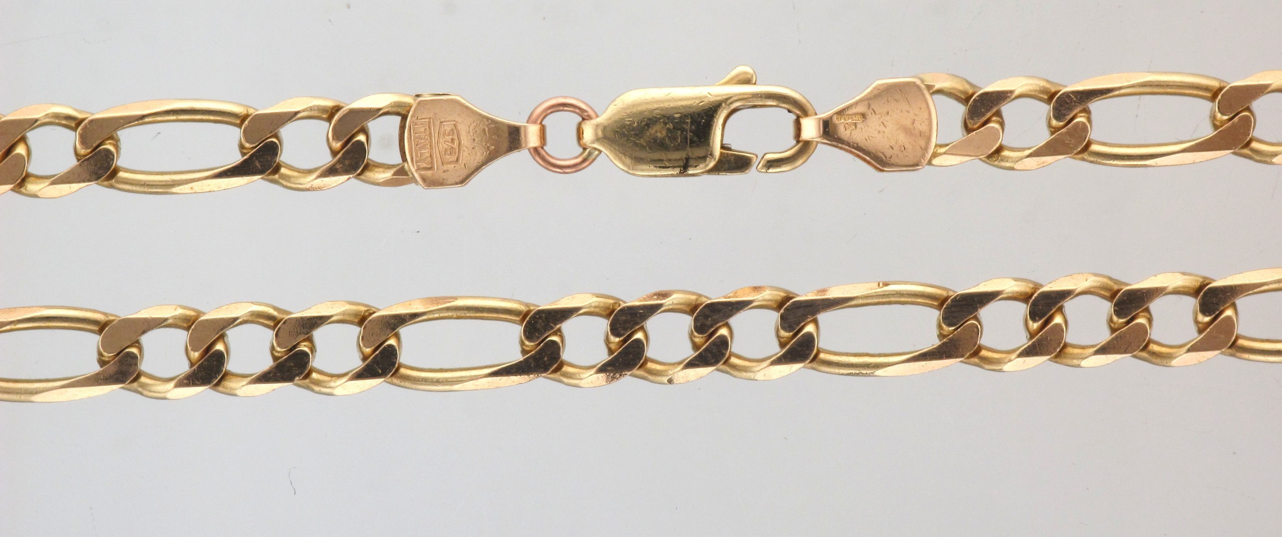 9ct Gold 20.5″ 5mm Gauge Bevel Edge Filed Figaro Link Chain With A Lobster Clasp – Weight: 15.1 Grams