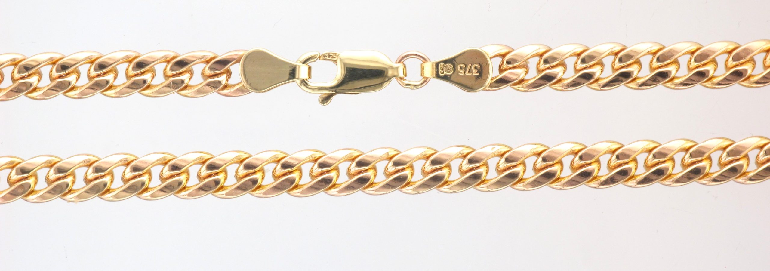 9ct Gold 22″ 4.4mm Gauge Bevelled Rounded Curb Link Chain With A Lobster Clasp – 25.3 Grams