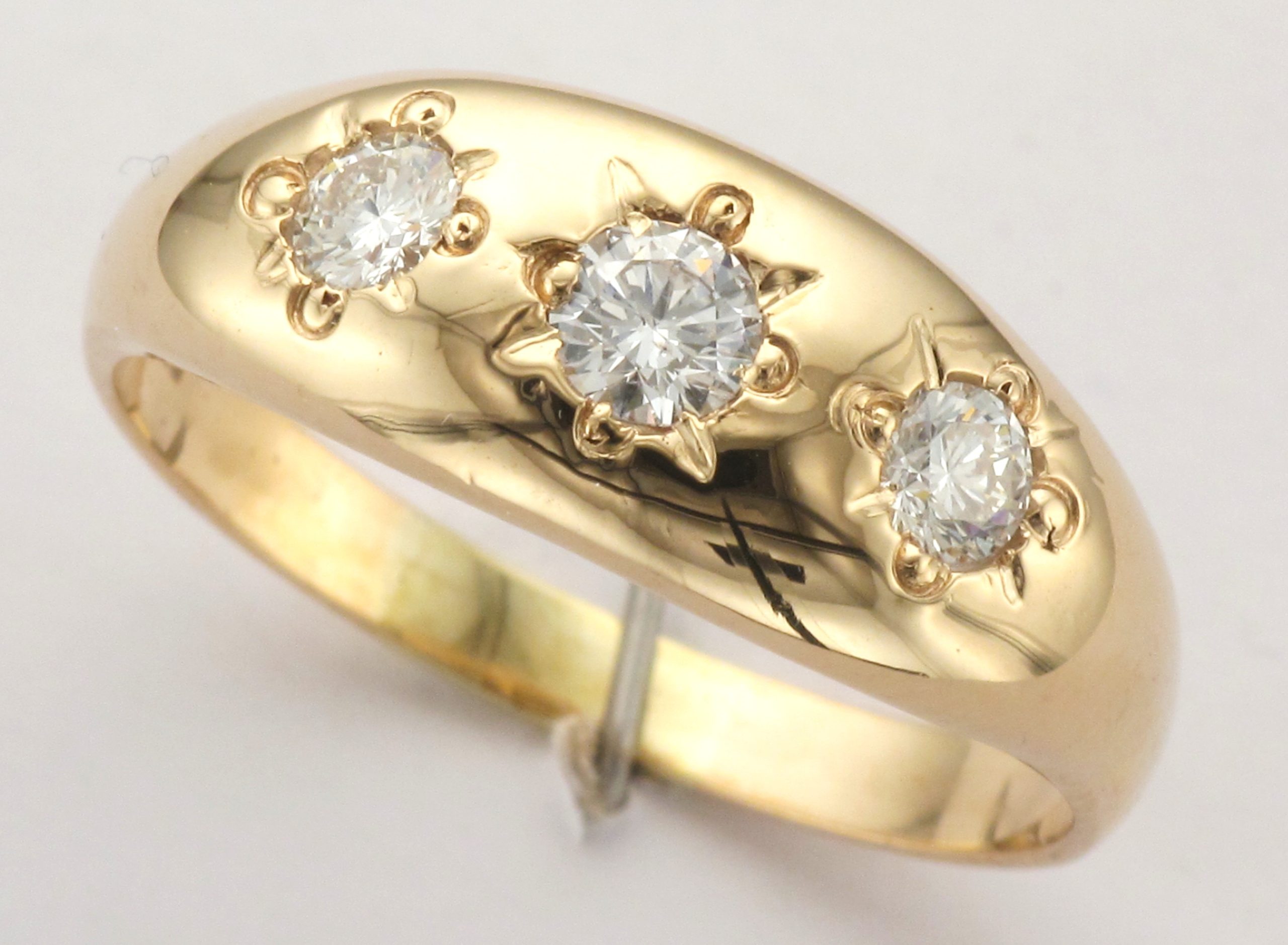 Mens 9ct Gold 3-Stone Round Brilliant Cut Diamond Star Set Graduated Gypsy Ring – Ring Weight: 5.4 Grams – Total Diamond Weight: 0.58ct (Estimated) – Ring Size: V 1/2