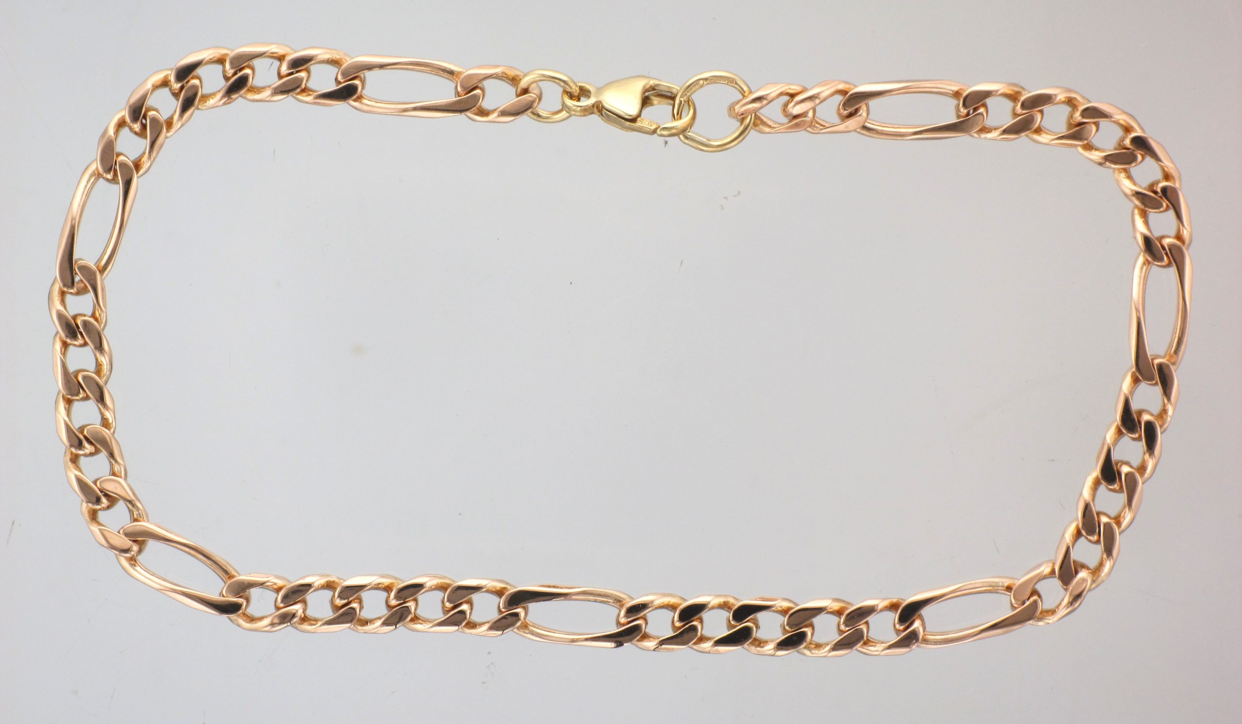 9ct Gold 7.75″ 4.1mm Gauge Filed Figaro Link Bracelet With A Lobster Clasp – Weight: 6.8 Grams
