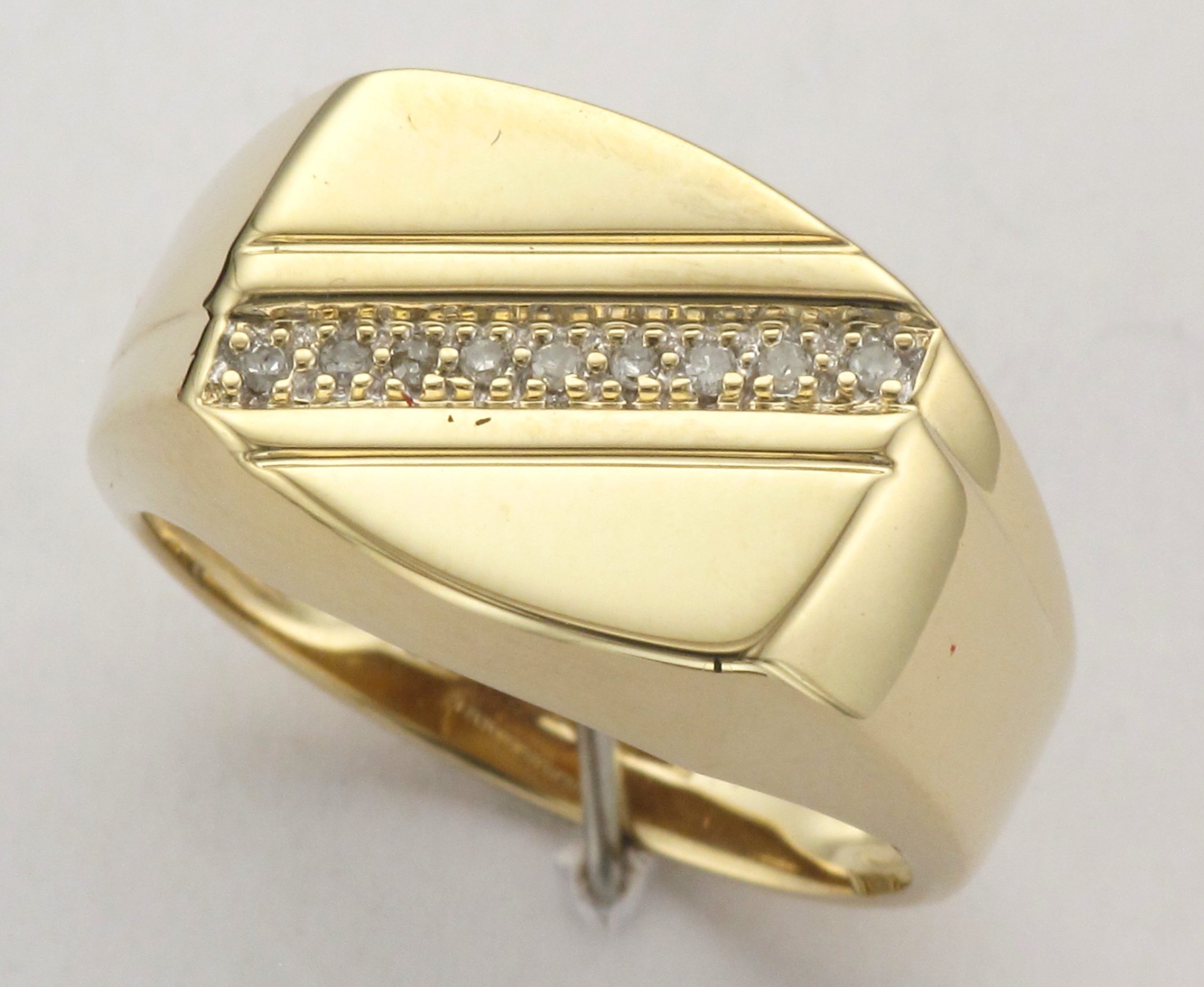 9ct Gold 9-Stone Eight Cut Diamond Claw Diagonal Set Plain Polished Curved Rectangular Signet Ring – Ring Weight: 4.6 Grams – Diamond Weight: 0.045ct – Ring Size: N