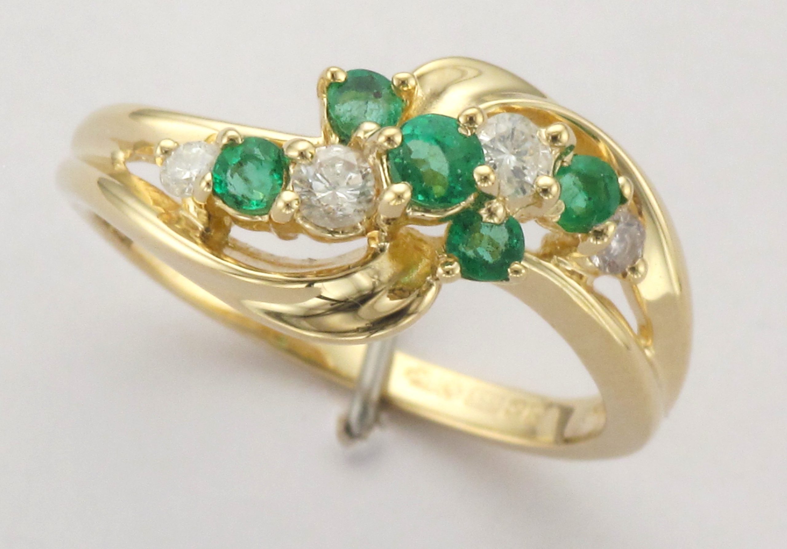 9ct Gold 9 Stone Emerald & Diamond Crossover Ring