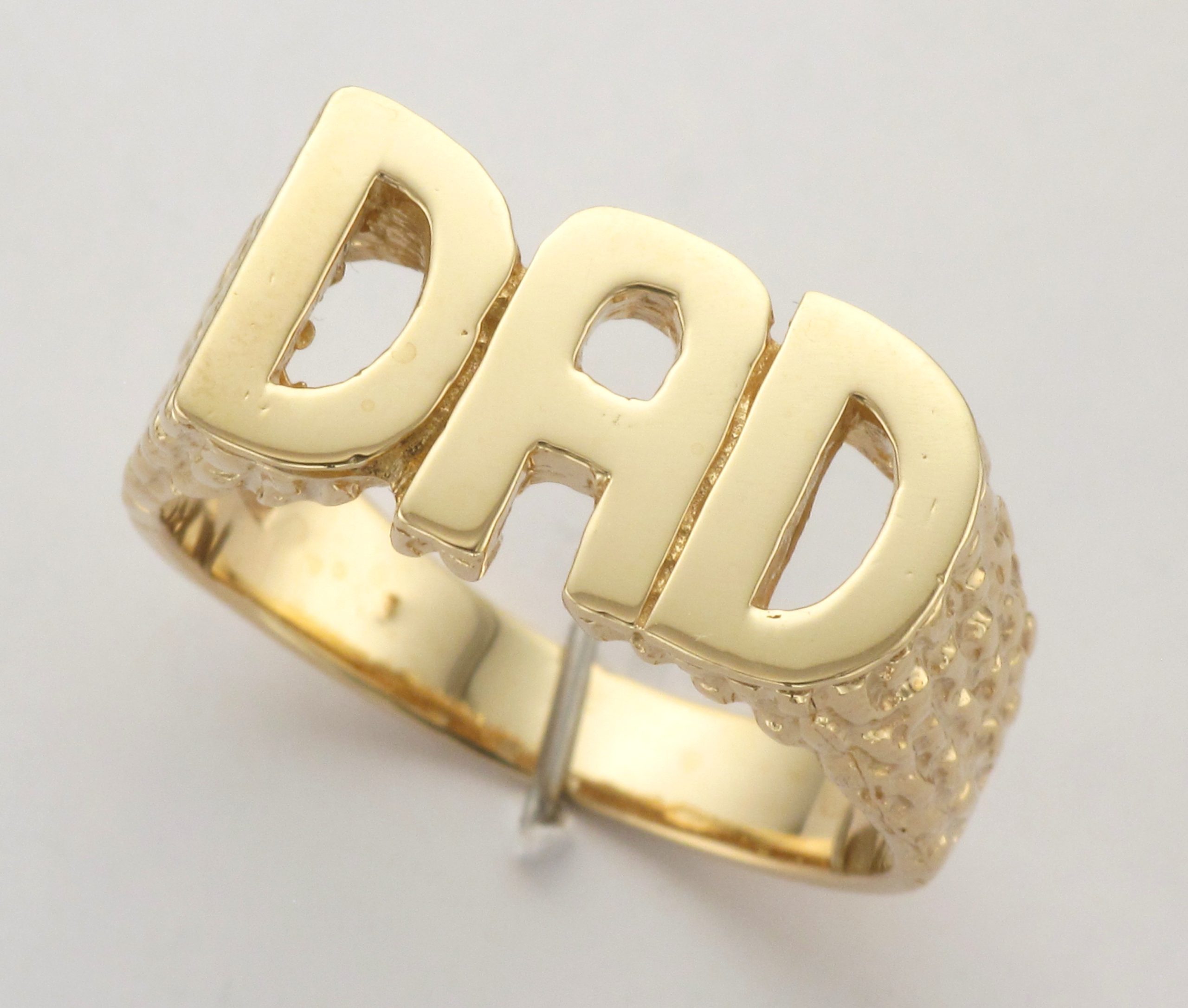 Mens 9ct Gold Initial DAD Ring With Barked Shoulders – 7.9 Grams – Ring Size: R 1/2