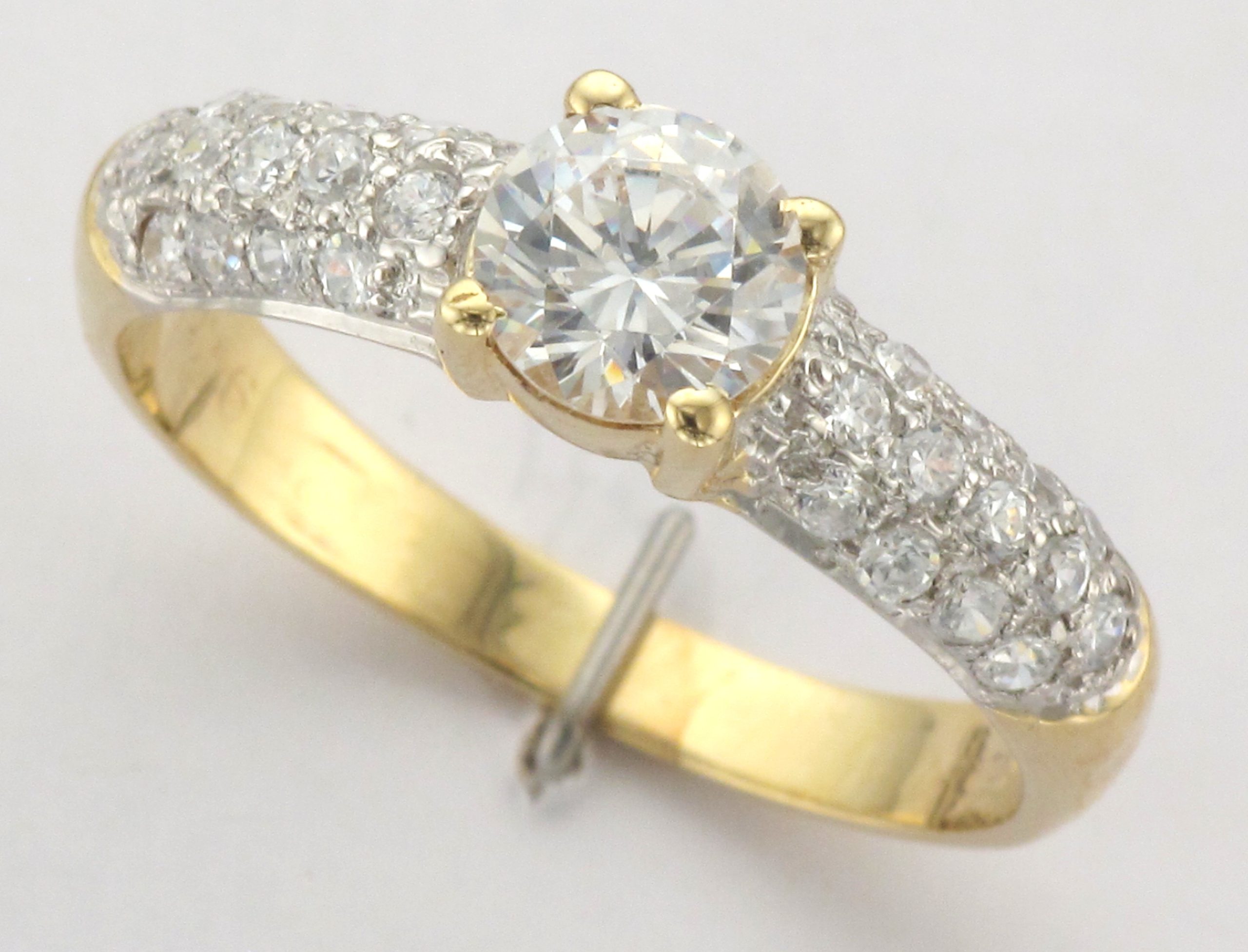 9ct Gold Single Stone Cubic Zirconia Ring With Pave Shoulders
