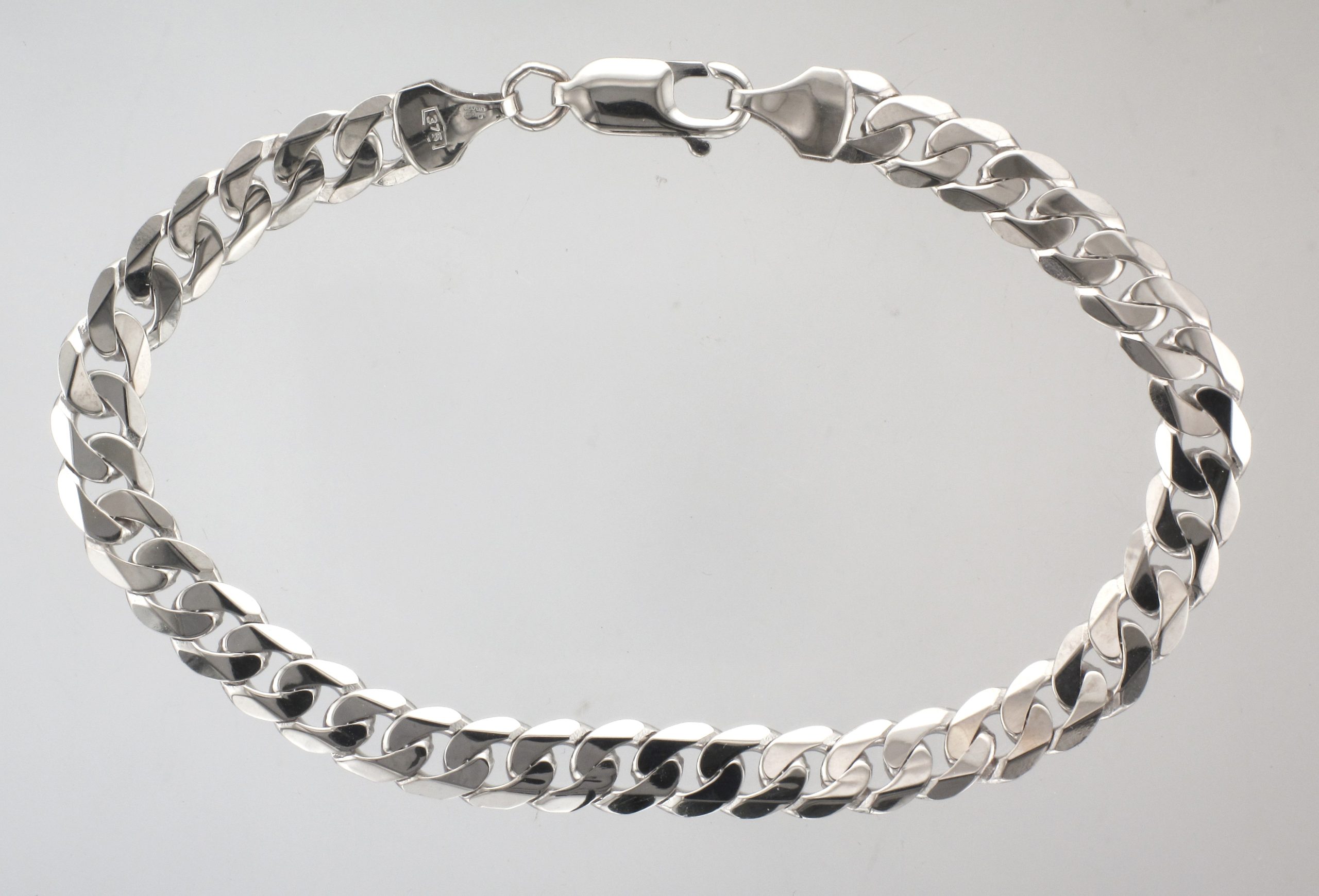 9ct White Gold 7.5″ 6.3mm Gauge Bevelled Filed Rounded Curb Link Bracelet With A Lobster Clasp – 9.0 Grams