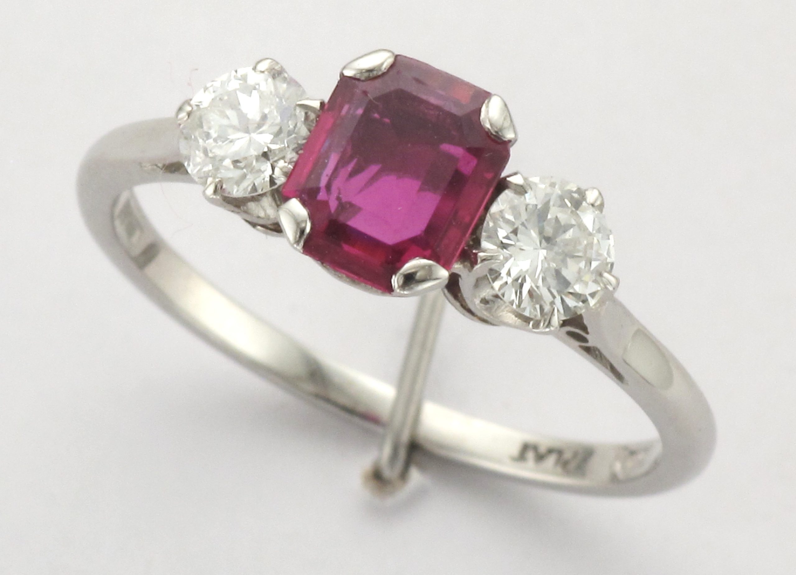 Platinum (850) 3-Stone Ruby & Diamond Ring